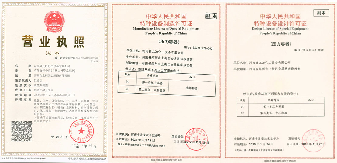 公司已通過ISO9001-2008�(zhì)量管�、ISO14001-2004�(huán)境管理和GB/T28001-2001職業(yè)健康安全管理體系�(rèn)�。具有一、二類壓力容器設(shè)�(jì)和生�(chǎn)許可證,完善的理化檢�(yàn)和無損檢�(cè)�(shè)�、大型退火爐、各種起重設(shè)�、鉚焊設(shè)備、機(jī)加工�(shè)�。主要從事壓力容�、高效蒸�(fā)�、鋁土礦選礦技�(shù)和設(shè)備、新型生物發(fā)酵罐的設(shè)�(jì)、制作和安裝。主�(dǎo)�(chǎn)品廣泛應(yīng)用于氧化鋁、造紙污水處理、生物發(fā)酵、食�、化工等行業(yè)。其�,各類蒸�(fā)濃縮�(shè)備及換熱�(shè)�、攪拌設(shè)備、污水處理設(shè)備的�(shè)�(jì)、制作及技�(shù)裝備已處國內(nèi)�(lǐng)先地位。本公司的優(yōu)�(shì)技�(shù)在于可根�(jù)用戶的物料參�(shù)及要求設(shè)�(jì)出經(jīng)�(jì)、合理的單元工藝�(shè)備�